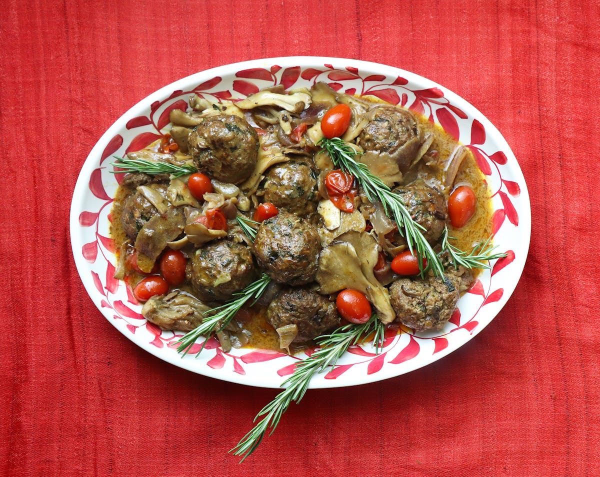 As we start to anticipate and invite cooler temperatures, this may be the perfect stew to start off a new season. Find the best mushrooms you can and leave them whole while you cook them. They may fall apart a bit but will hold up the flavors. The stew will taste even better the next day, when all the flavors have a had a little bit more time to mellow out.